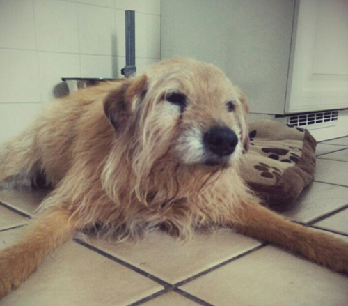 Justus ist nun schon 19 Jahre alt und seit 15 Jahren ein treuer Begleiter und Seelenhund seines Herrchens. Er liebt das Gericht „Witwe Boltes Schrecken“, jede Fütterung weckt alle seine Lebensgeister.
