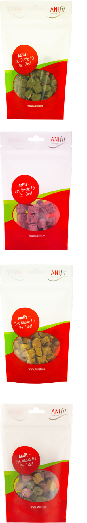 Als Erweiterung bietet Anifit diese Leckerlis nun in Kombination mit sogenannten Superfood-Produkten in Bio-Qualität an. Die ausgewählten Sorten haben eine sehr markante Farbe und geben dem Produkt damit eine leicht zu erkennende Farbnote.