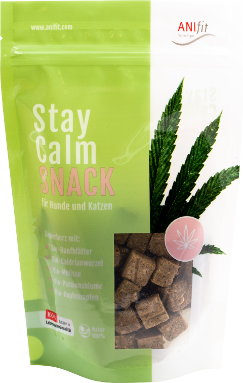 Warum nicht das Nützliche mit dem Angenehmen verbinden? Der neue Stay-Calm-Snack von Anifit ist ein typischer Fleisch-Snack und enthält aber hochwirksame pflanzliche Kräuter, die eine beruhigende Wirkung haben.